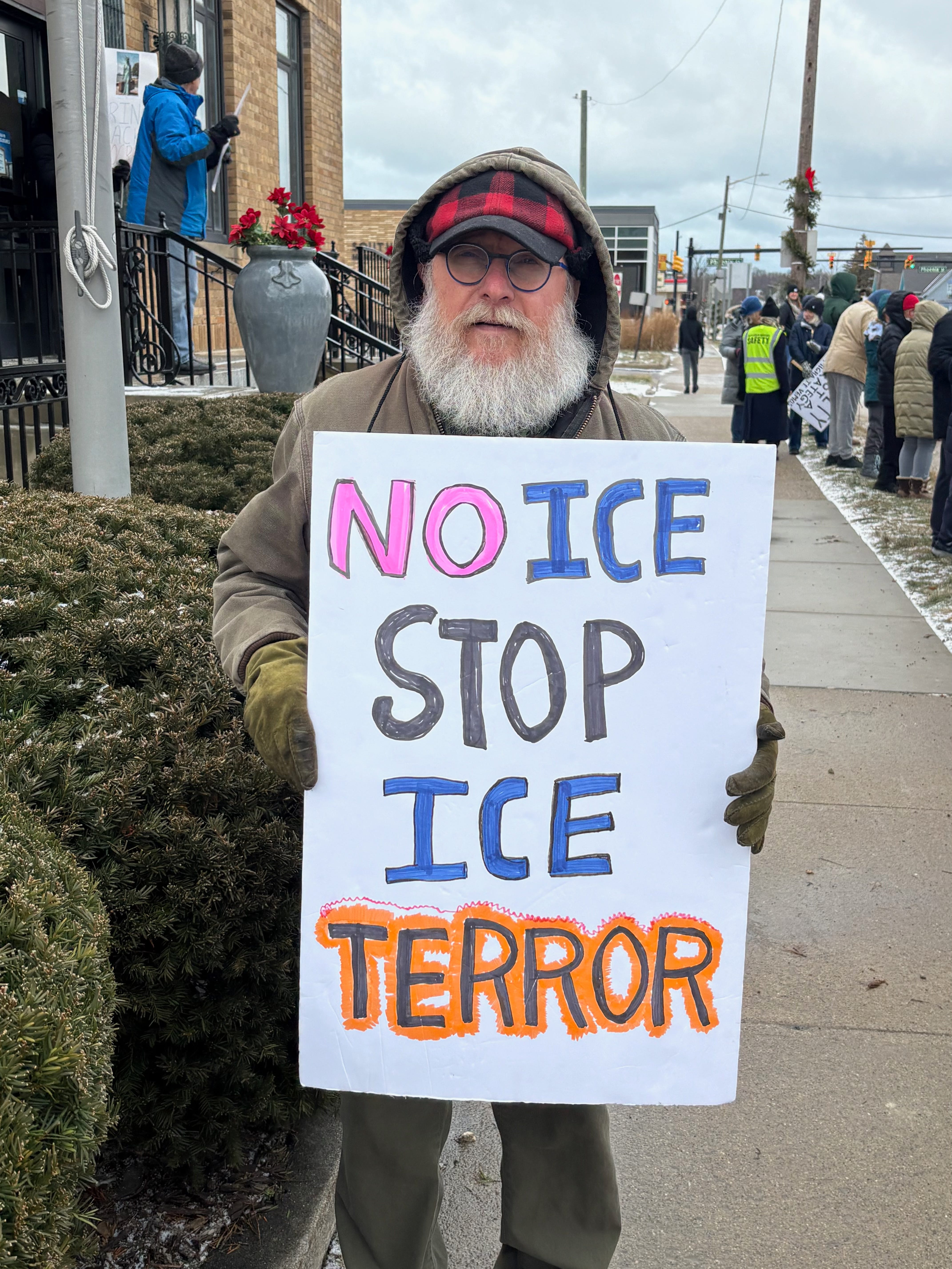 about 4000, today. I had my sign and so did about 75 others. I had just come from church where our pastor broke down in tears at the pulpit over the recent events, and the shooting of Renee Goode as well as the growing fascism of Trump and his cruel policies and the cruelty of the ones carrying it out in cities across the country. Most people in our congregation feel the same, we lament and weep and pray but many get out with our signs and protest. In our little town there is a movement called Indivisible. Mostly seniors and vets come to the protests but more middle aged people and younger are starting to show up. Last night I made my sign for today, a large one that read "NO ICE, STOP ICE TERROR." Still I wish there was more I could do besides post, speak out and attend local rallies. I have signed so many petitions and sent letters to our elected politicians. Some agree and are doing what they can in DC, one is basically absent from us, does no town halls and his form letter responses tell us nothing except that he is Trumps horn here and is OK with his policies. How can these people call themselves Christian and sleep at night. Have they not read the gospels of have any clue about Jesus' teachings and ministry? The level of deliberate ignorance, political amnesia and denial is staggering. The hypo-christianity displayed by these folks in MAGA and surrounding Trumps is sickening. Trump is not a savior or acts like a Christian. He is a graven "Image" of a cult that may be starting to weaken or is digging in, depending on who you get your narrative from. I ask myself every day, how shall I then live given these times. Life is not normal as what I witness is not normal. Fascism is ulgy and we have been warned so many times from so many sources for the past several years and yet, this craven man bloated with hubris and drunk with power has been allowed to take our country by some force which I can’t quite determine right now. Is hate that powerful? Are there nefarious evil forces behind he scenes at work? Or do people just not care as long as they have their comforts, light screens and entertainment - bread and circuses? How in then hell did such a gross con man become our president and hold so many mesmerized under his control, especially the politicians on the right. How did they once condemn Trump and now kiss his ass and act like all that in the past was just fun and OK now. The rewriting of the history, controlling the narrative, propaganda and lies, suppressing dissent, controlling information, suppressing and slandering opponents, then use of fear and force to control, intimidate and threaten people and their families, and the use of scapegoating and slander or minorities are just a few tools of a fascist dictatorship. Such leaders can do no wrong and cannot be questioned. Those who do, meet tragic ends, but eventually so do the fascist leaders but not before a great deal of damage is made and people suffer. I hope we can skip that latter end but we have reached a tipping point - return to democratic norms and decency or allow full blown fascism to drag us into another dark period of our history right here on our homeland soil. Our soldier bled and dies fighting fascism in WW2 and the time has come to in any way we can to protest, resist and deny consent to the regime of Donald J Trump.